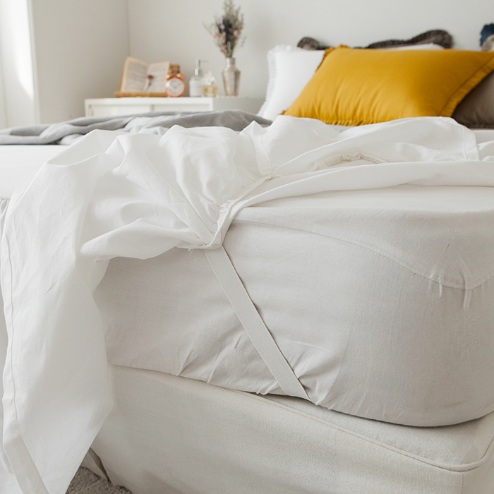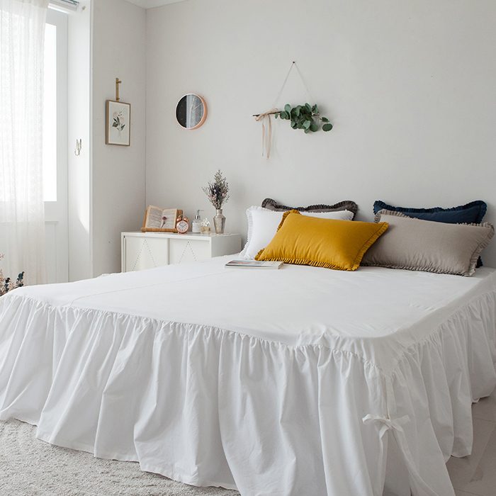 깨끗한 화이트 코튼소재 베드스커트입니다.