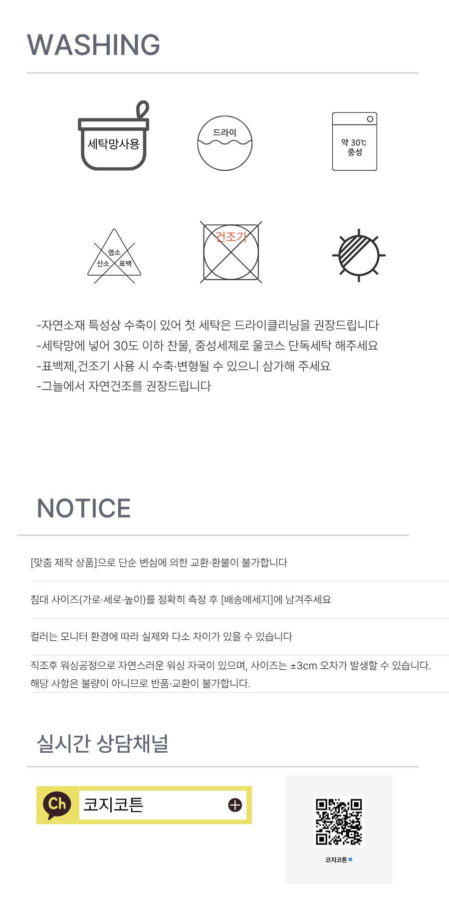 | 세탁방법 및 취급시 주의사항 | 드라이클리닝/울코스 단독세탁/열풍건조 금지 |
