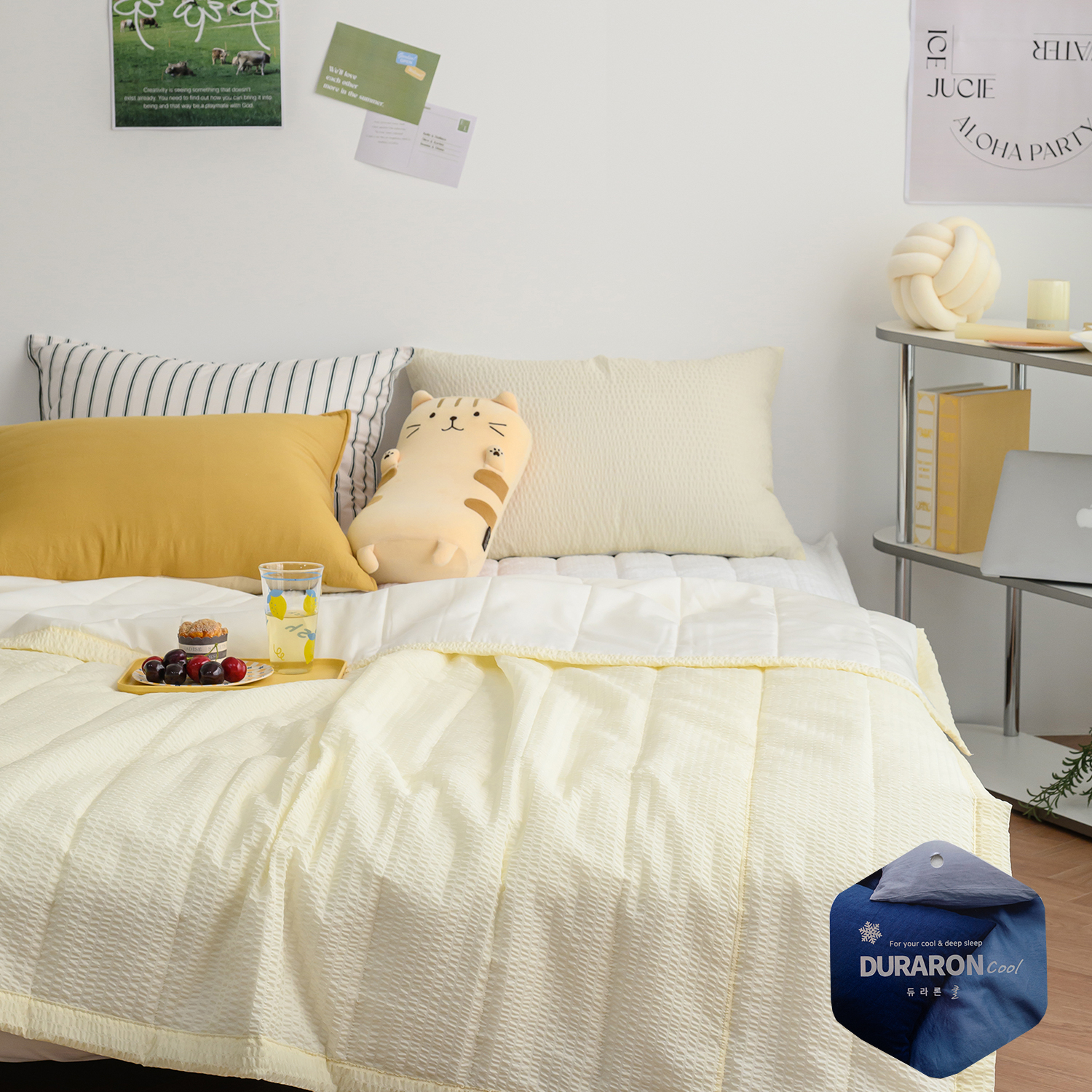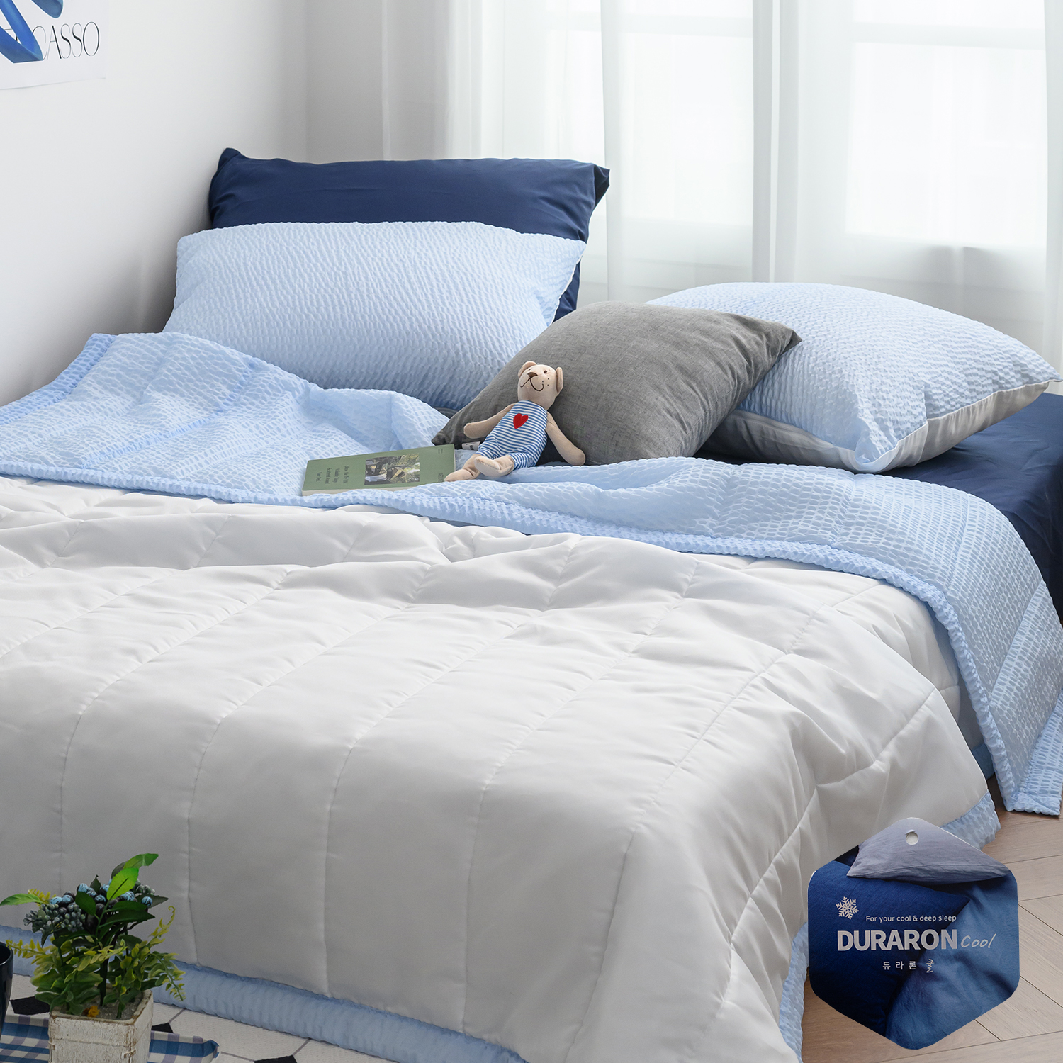 | 제품소재 | 이불앞면-시어서커(폴리100%)/뒷면-듀라론 냉감(폴리에틸렌100%)/충전재-폴리에스텔 100% |