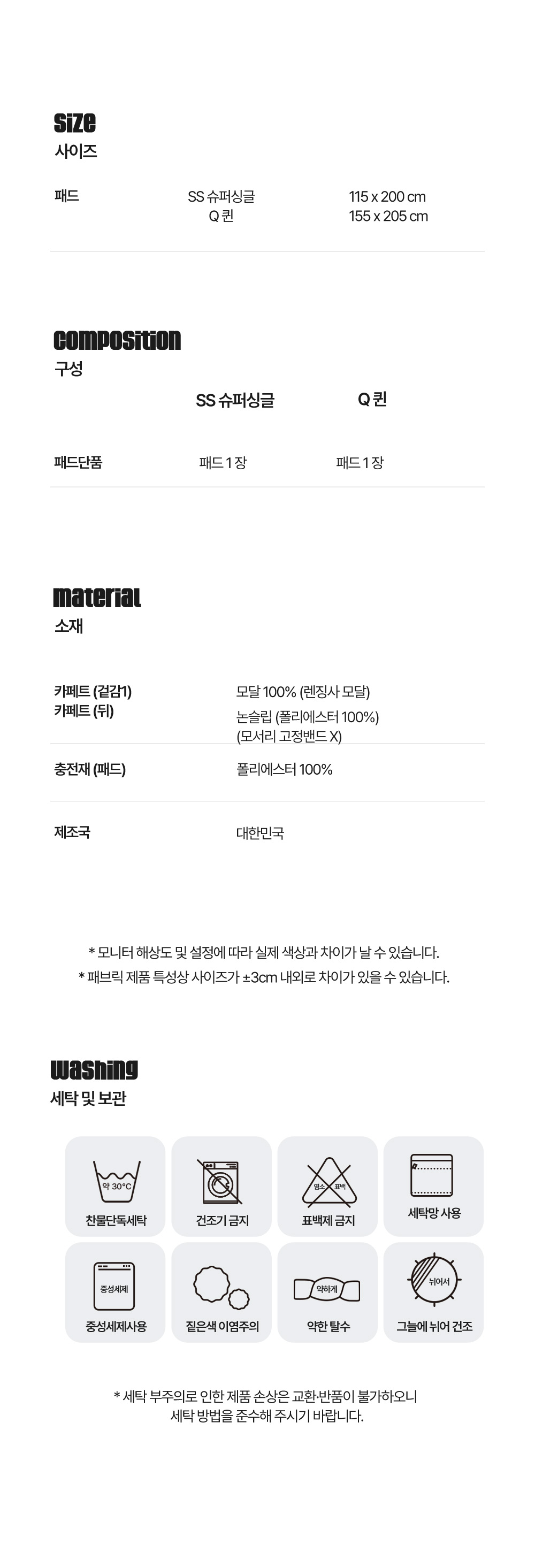 치수 싱글(SS)_115x200cm/ 퀸(Q)_155x205cm (±3~5% 오차있습니다)