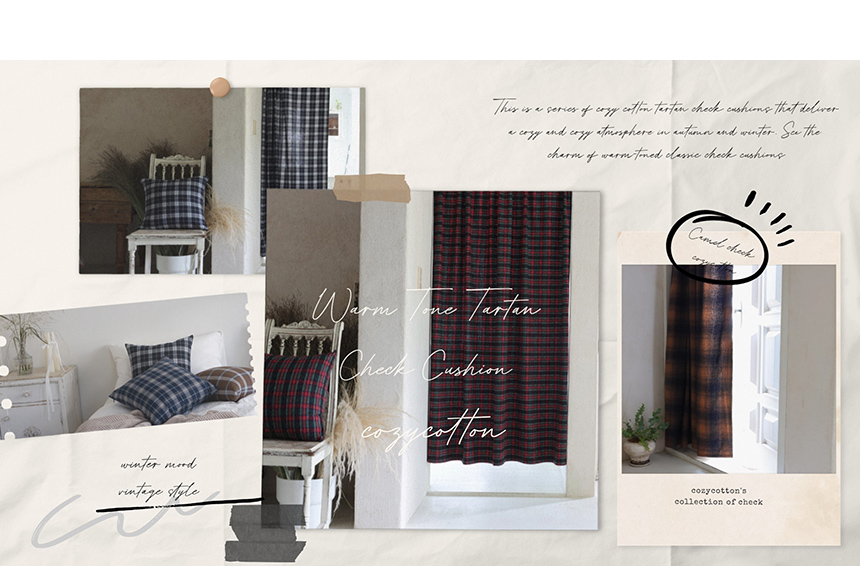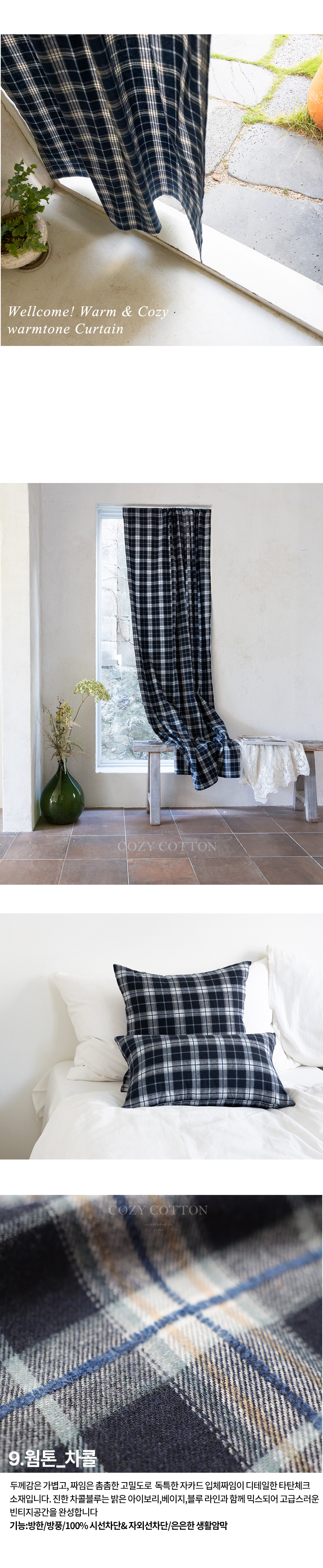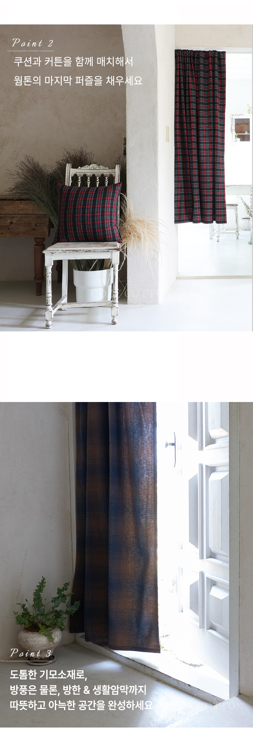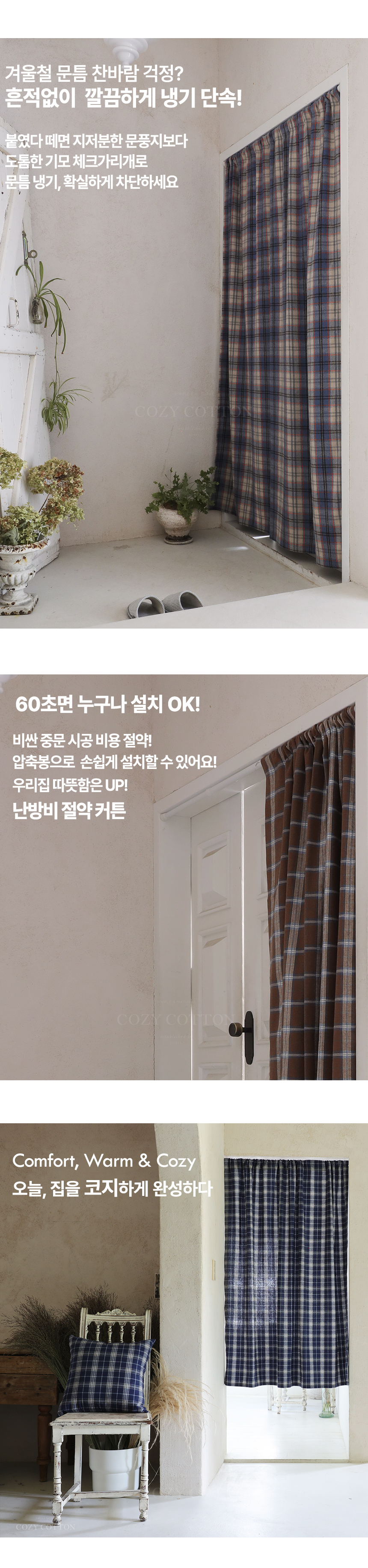[도톰한 방한 기모 체크 가리개커튼 9style ]