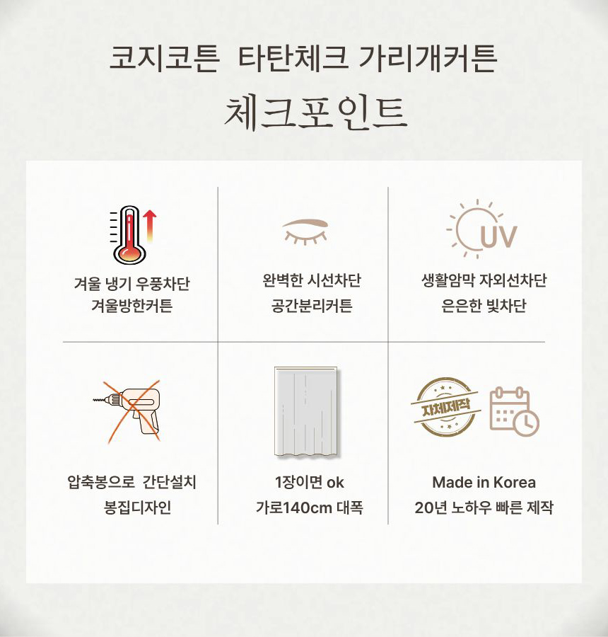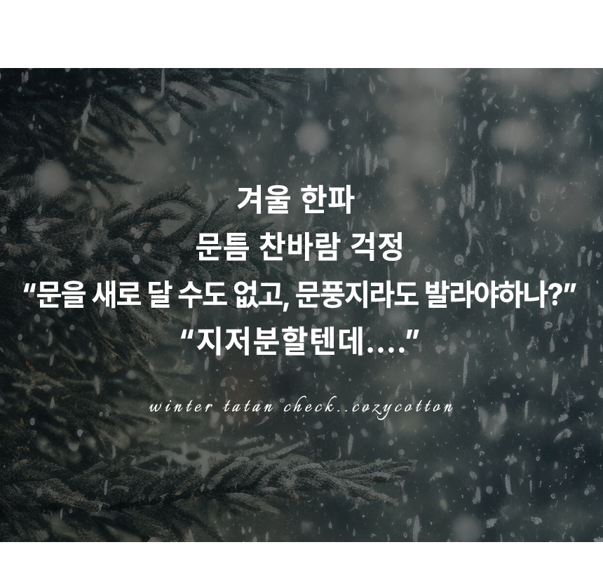 우풍 차단, 문풍지로는 부족할 때 창 전체를 감싸주는 도톰체크 가리개커튼으로