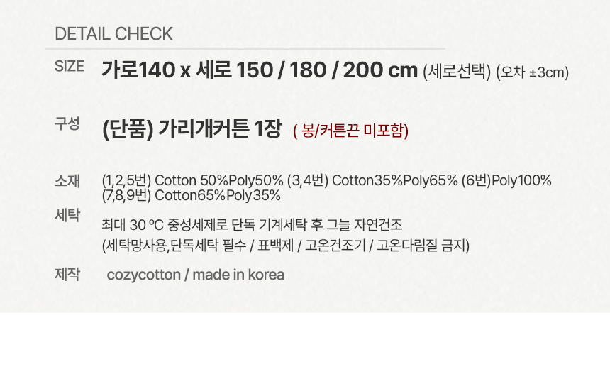 | 제품구성 | 가리개1장 (봉,커튼끈 미포함) |