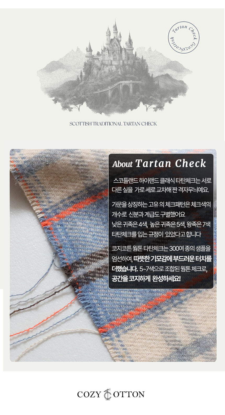 도톰한 두께감에 (앞면) 브러시드 체크로 암막소재는 아니지만,