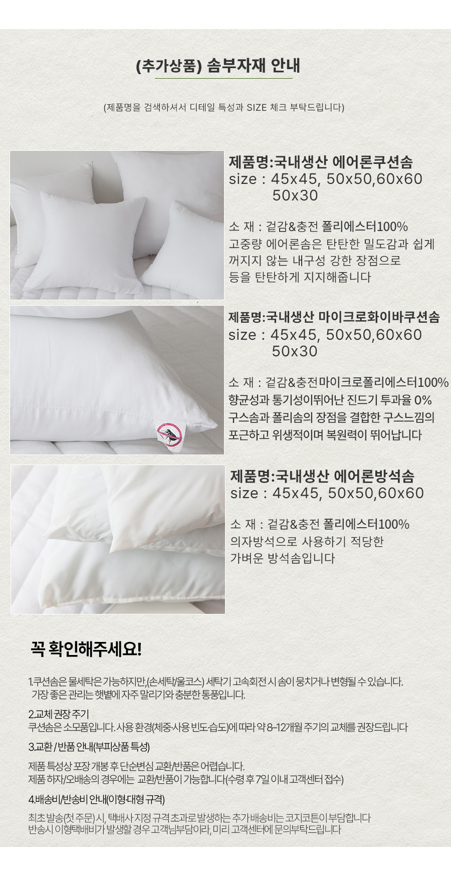 1. 45x45쿠션솜
