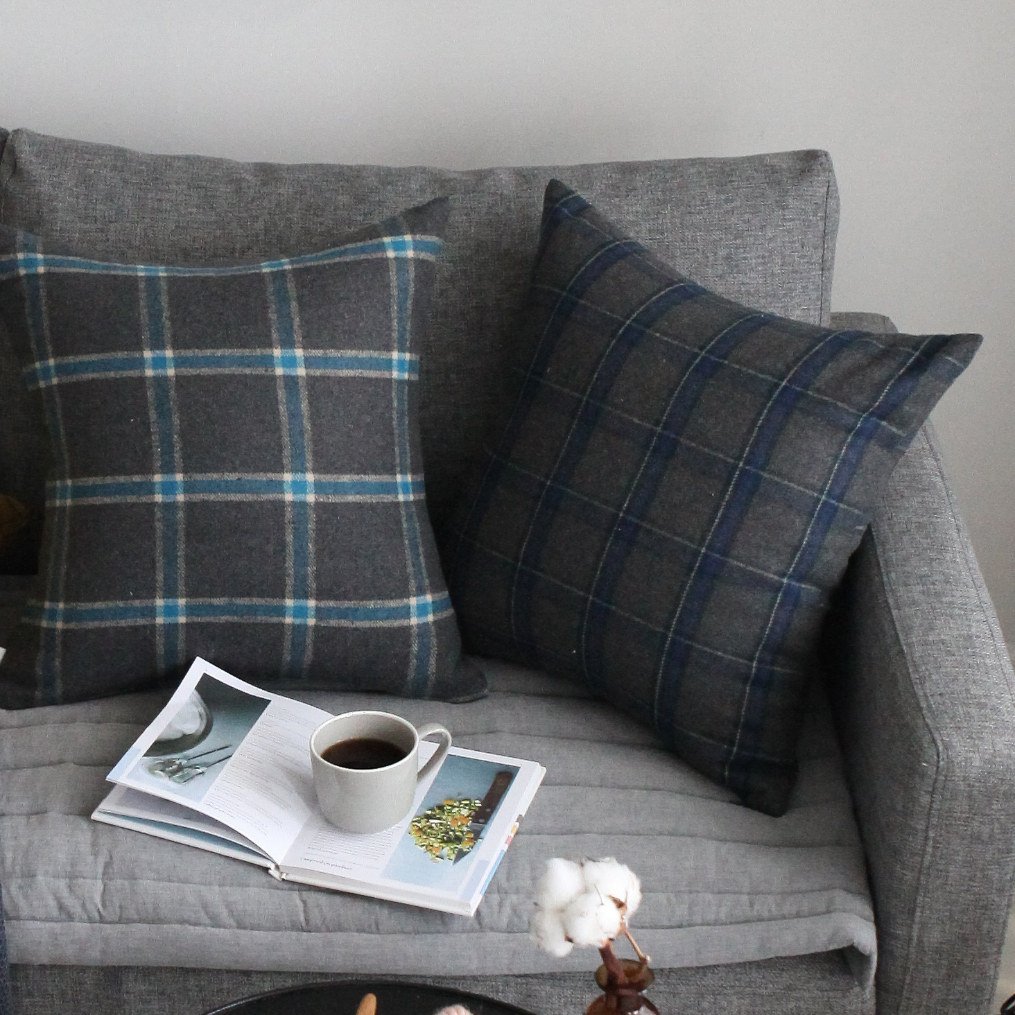 [따뜻한 런던블루 타탄체크커튼]과 set 아이템으로 거실이 까페분위기로 변한답니다.