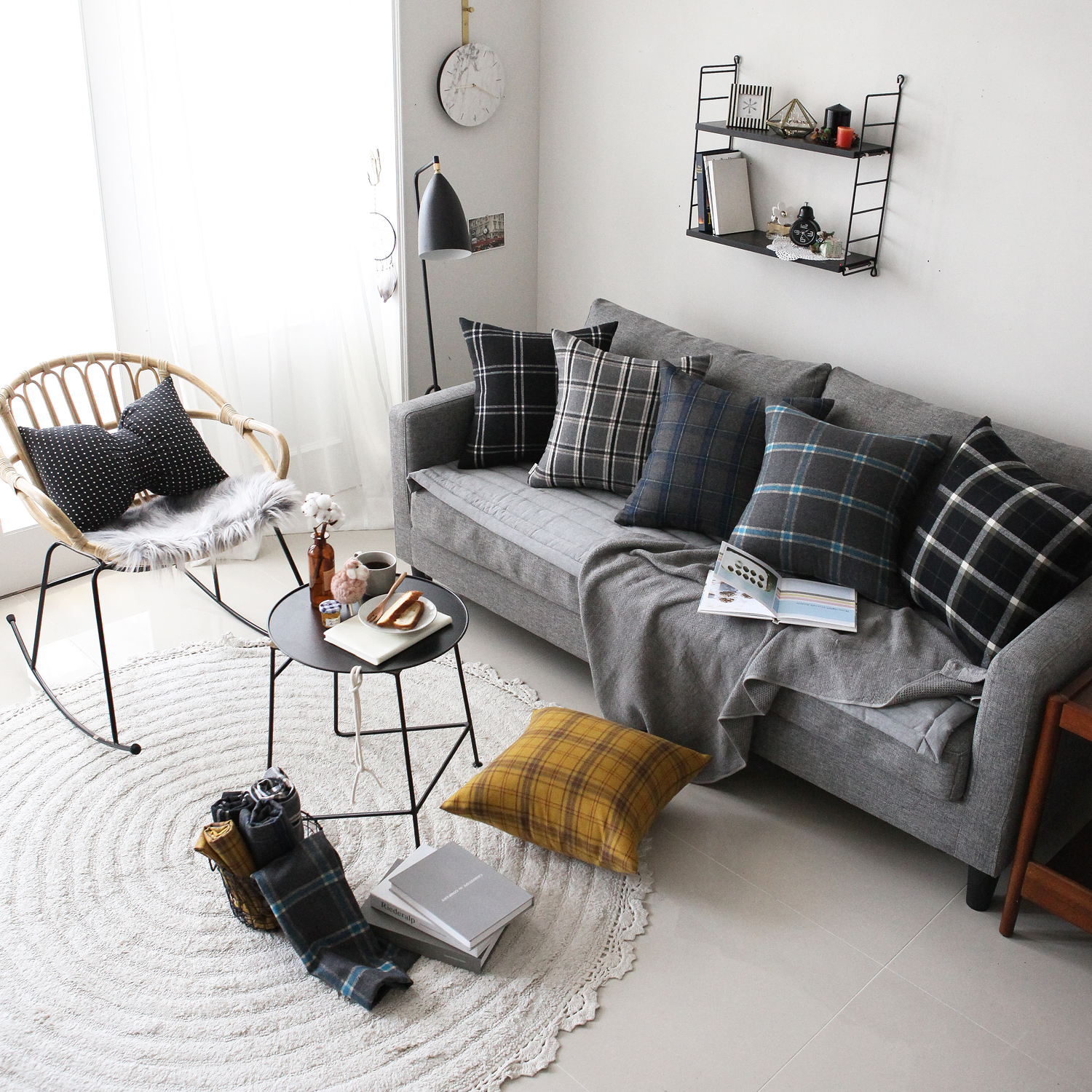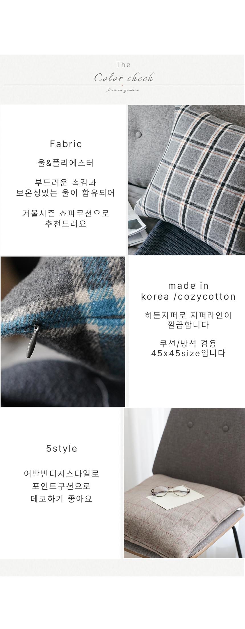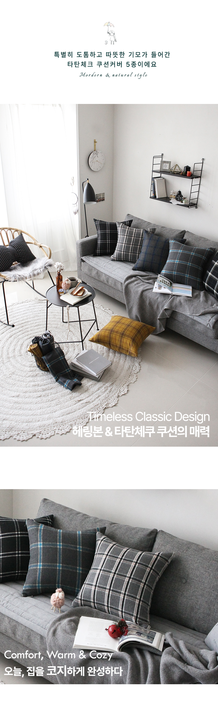 5종 모두 그레이/블랙 쇼파에 심플하게 잘 매치되는 타탄체크에요