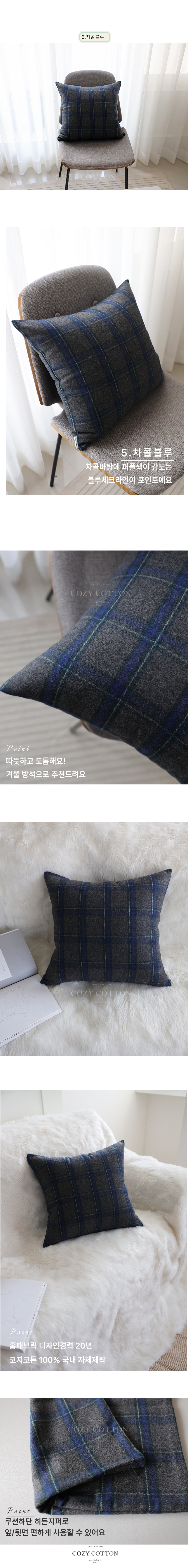 5번 챠콜블루 체크 쿠션은 챠콜 바탕에