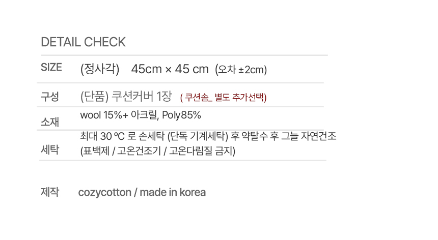 *구성: (단품) 쿠션커버 1장 (솜은 옵션추가해주세요)