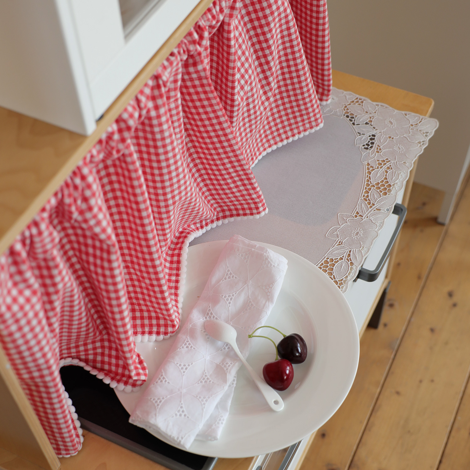 2인 테이블 러너로, 선반장 가리개로도