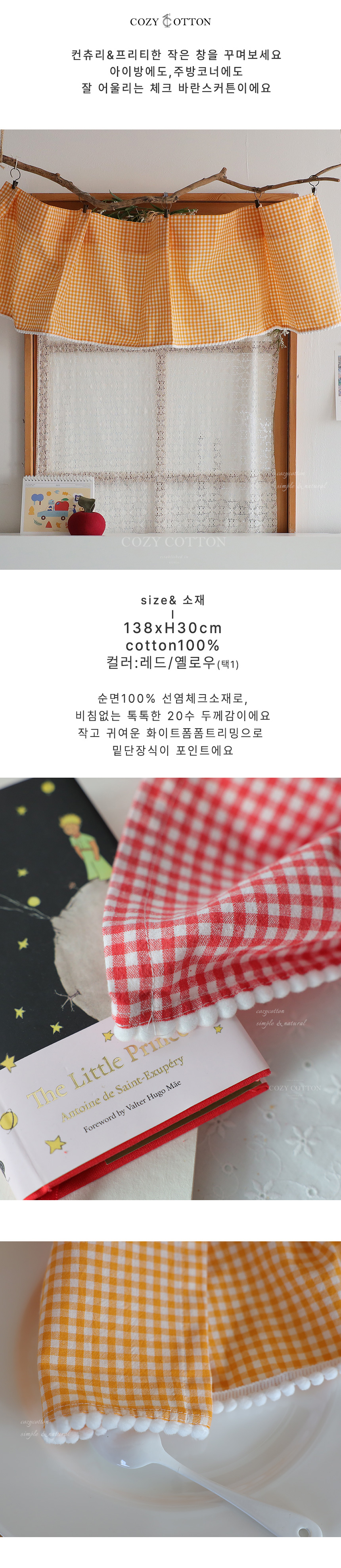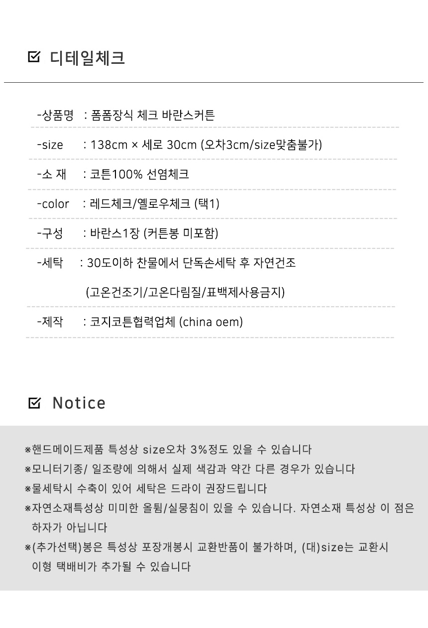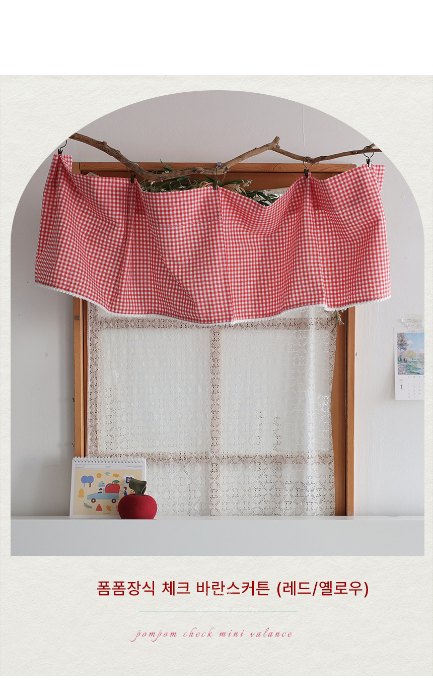 [30%sale]폼폼장식 체크 바란스커튼 2color