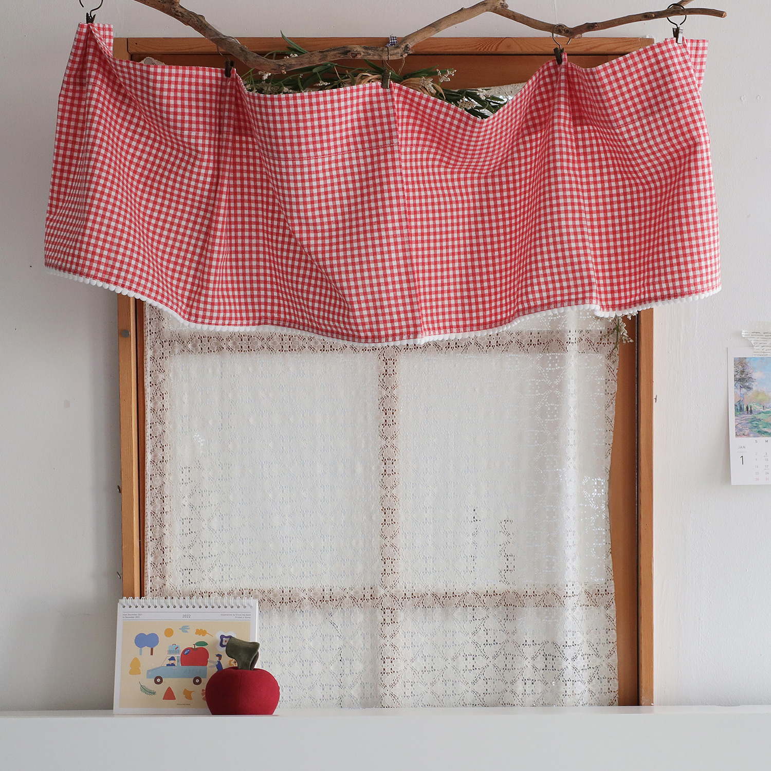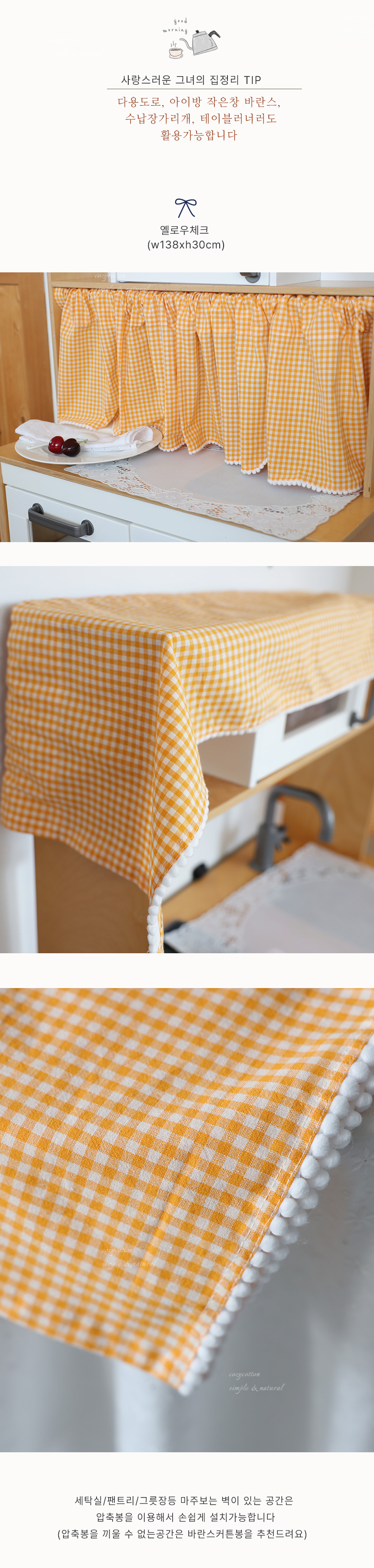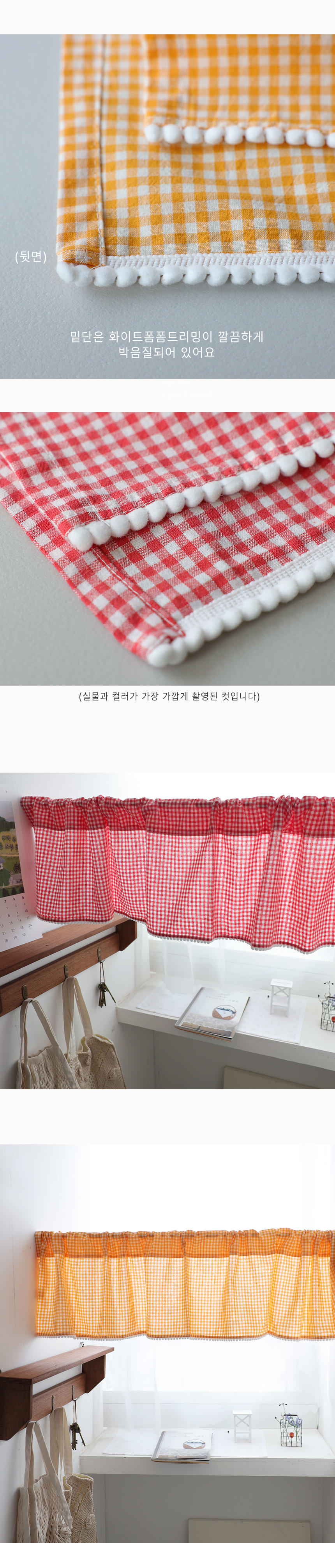 [30%sale]폼폼장식 체크 바란스커튼 2color