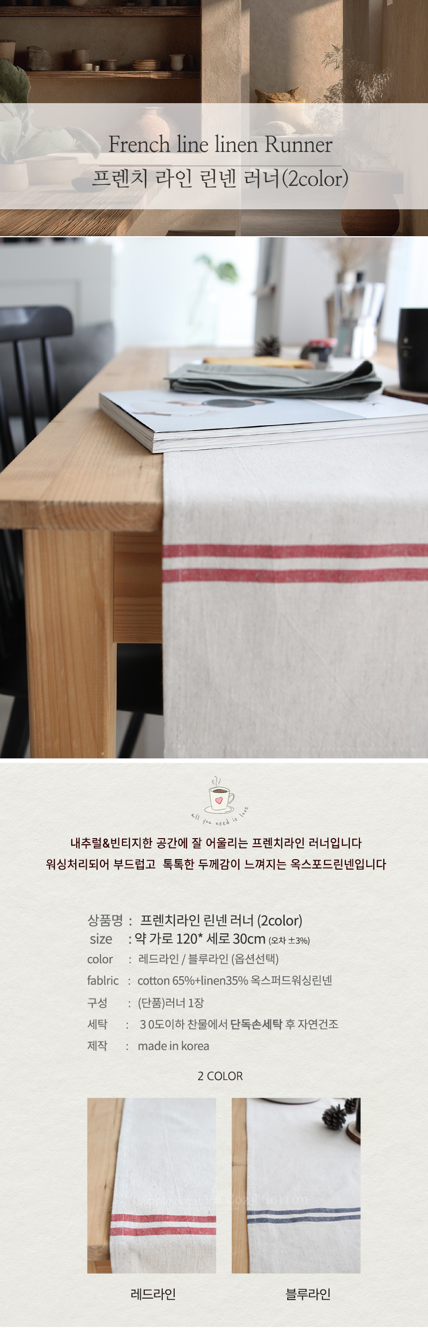내추럴&빈티지한 공간에 잘 어울리는 프렌치라인 러너입니다
