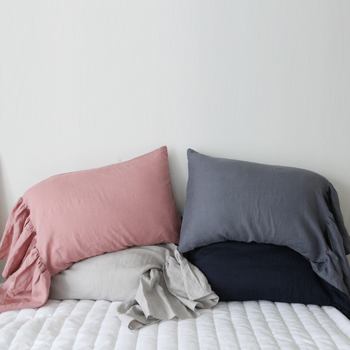 실크처럼 부드러운 워싱린넨 베개커버~ 롱프릴 디테일이 내추럴하고 로맨틱해요 :)