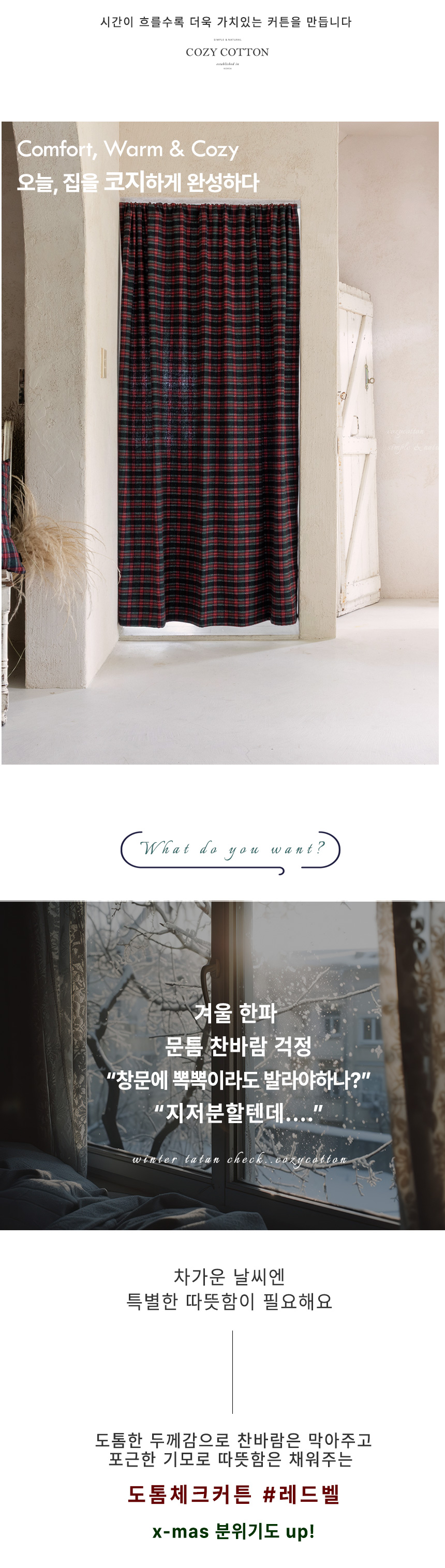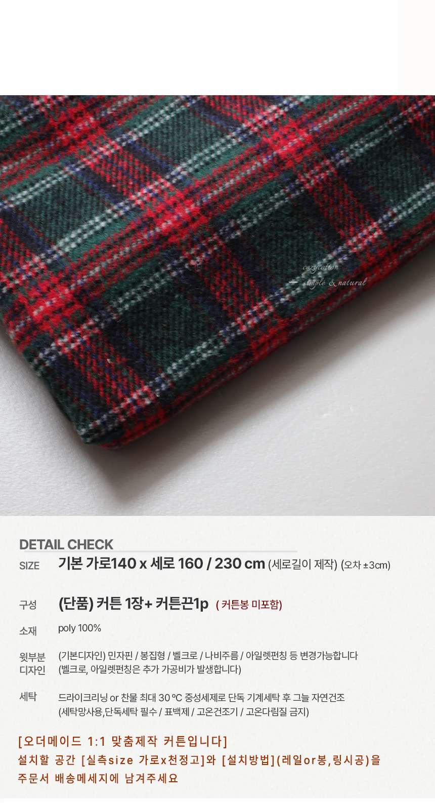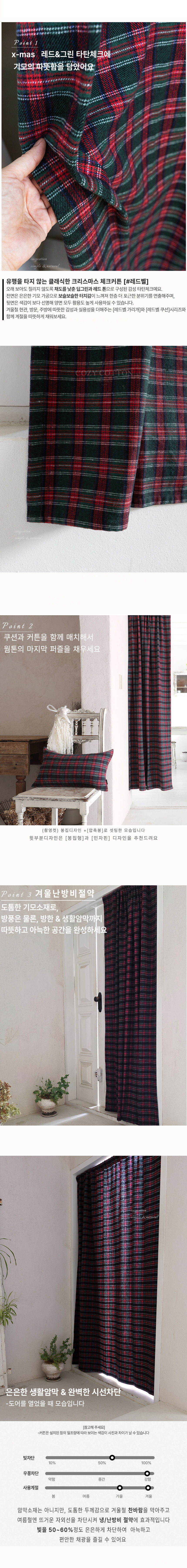 x-mas 분위기에 잘 어울리는 따뜻한 기모 타탄체크커튼이에요