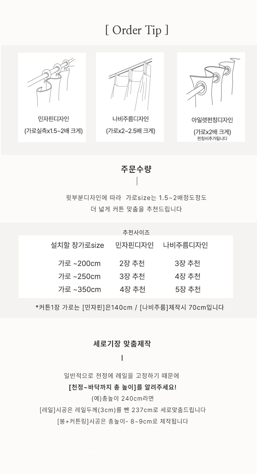 *윗부분디자인- 민자핀/봉터널/나비주름/아일렛펀칭등 원하시는 디자인으로