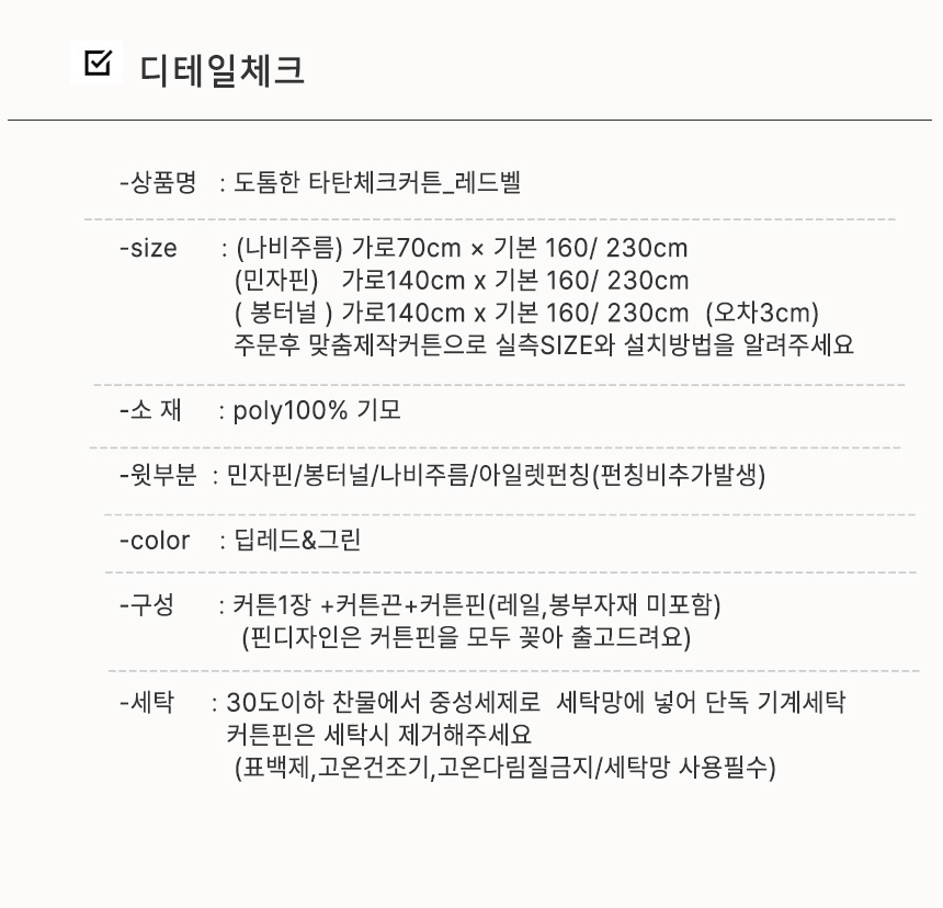 [도톰한 겨울 기모 타탄체크커튼_레드벨(맞춤제작 ]