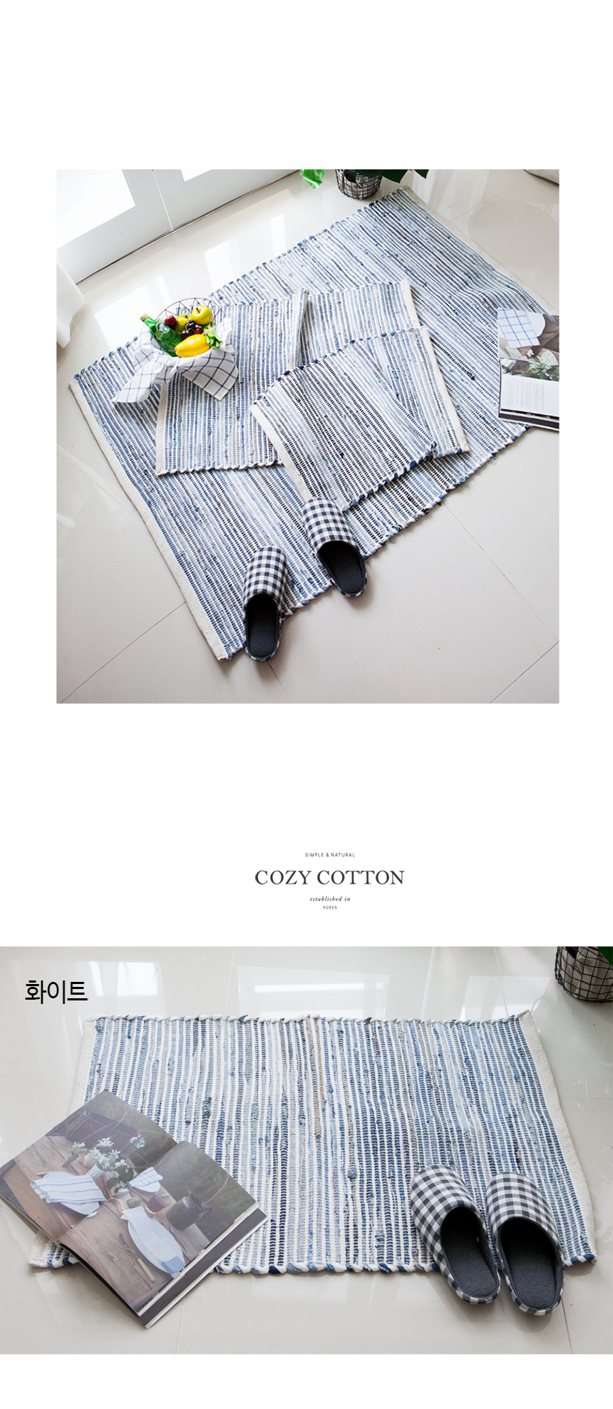 [ 블루데님 순면 러그 (화이트컬러) ]