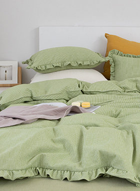 [25%세일]옐로체크 워싱코튼 차렵베딩