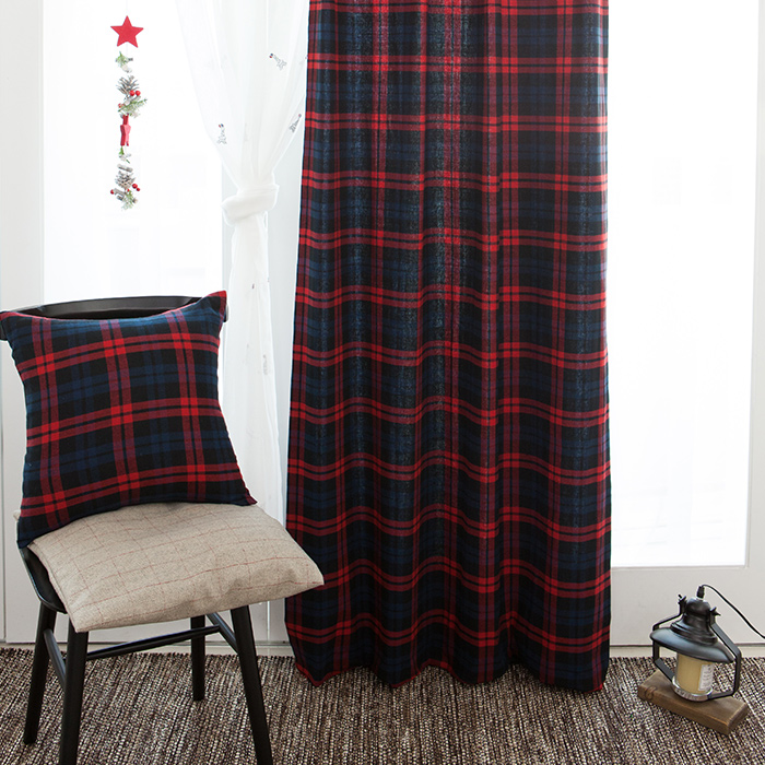 [디셈버체크커튼-레드컬러]