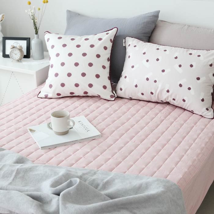 올록볼록 푹신하게 누빔한 인디핑크 선염면 매트커버입니다.