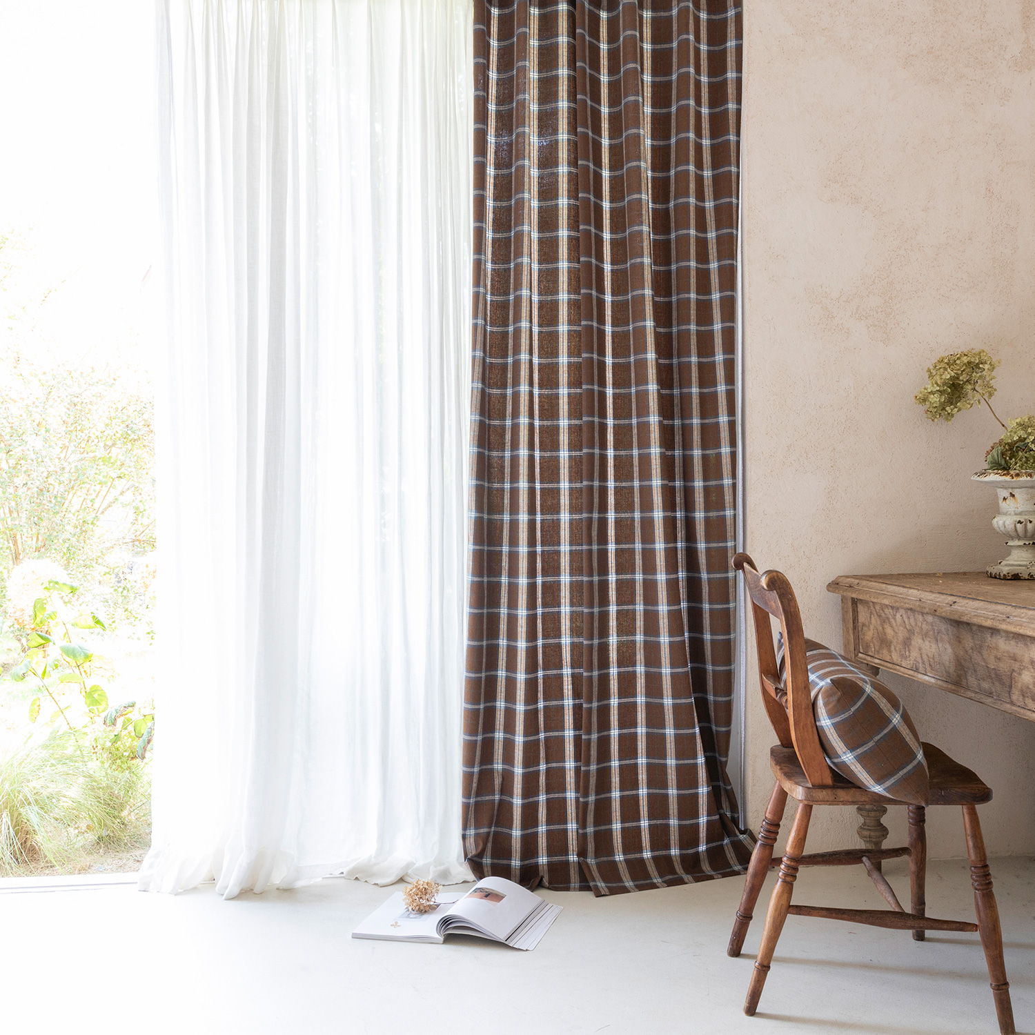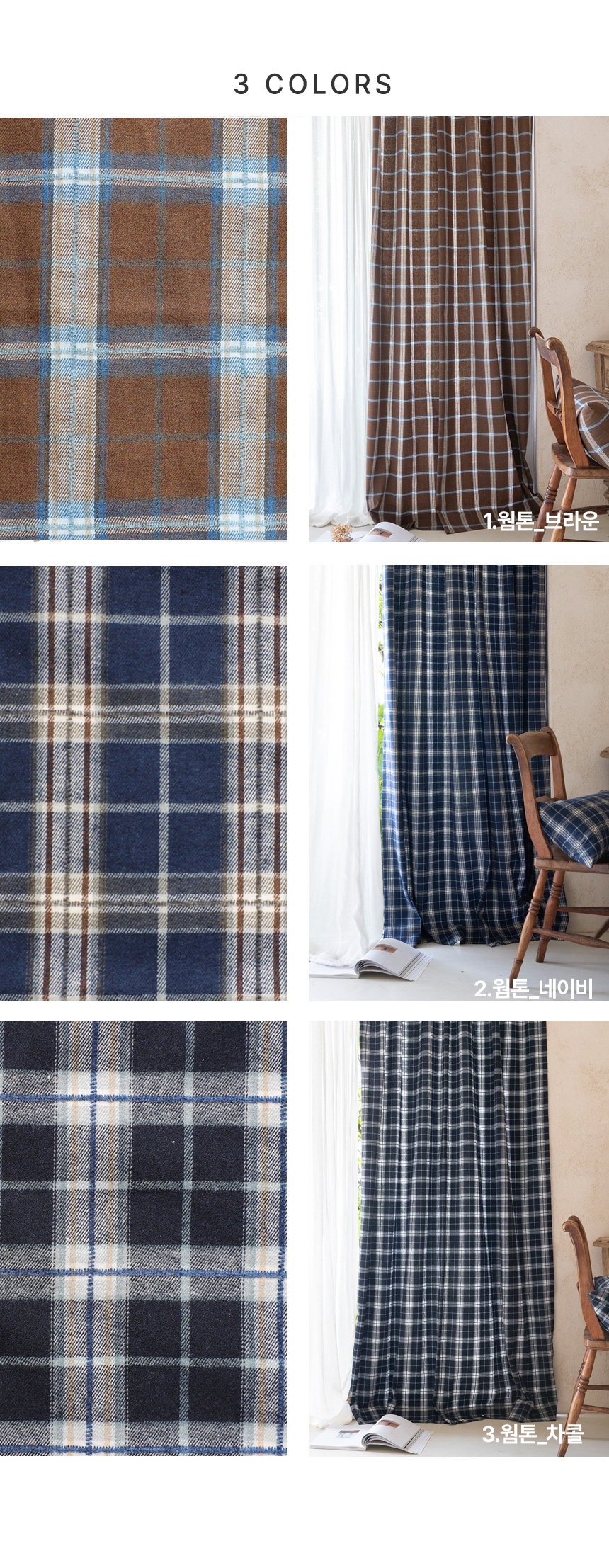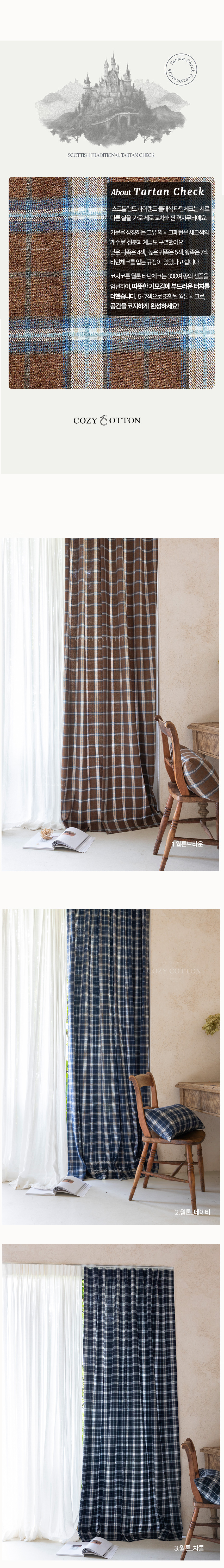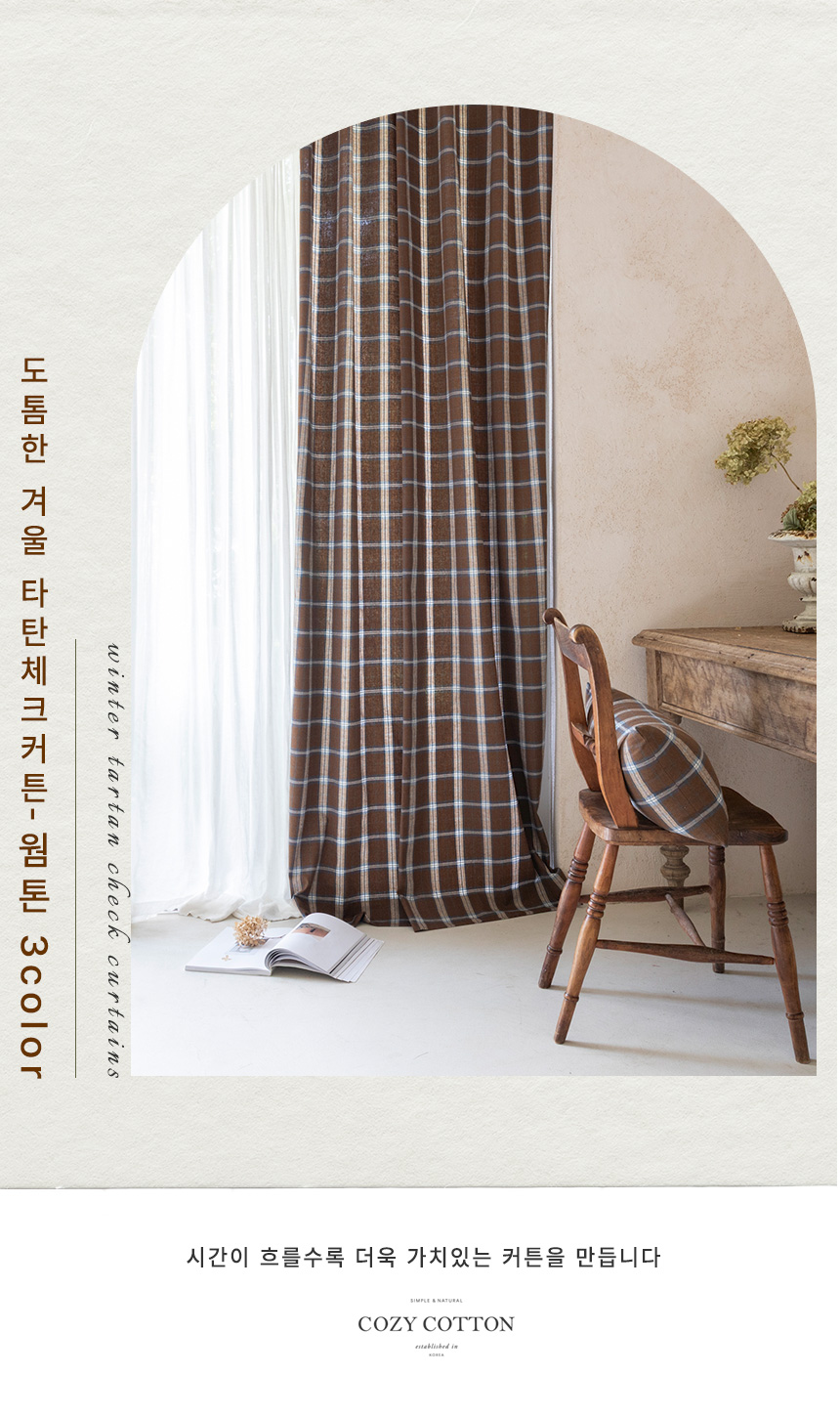 [도톰한 겨울 방한 기모 타탄체크커튼_웜톤3color (맞춤제작) ]