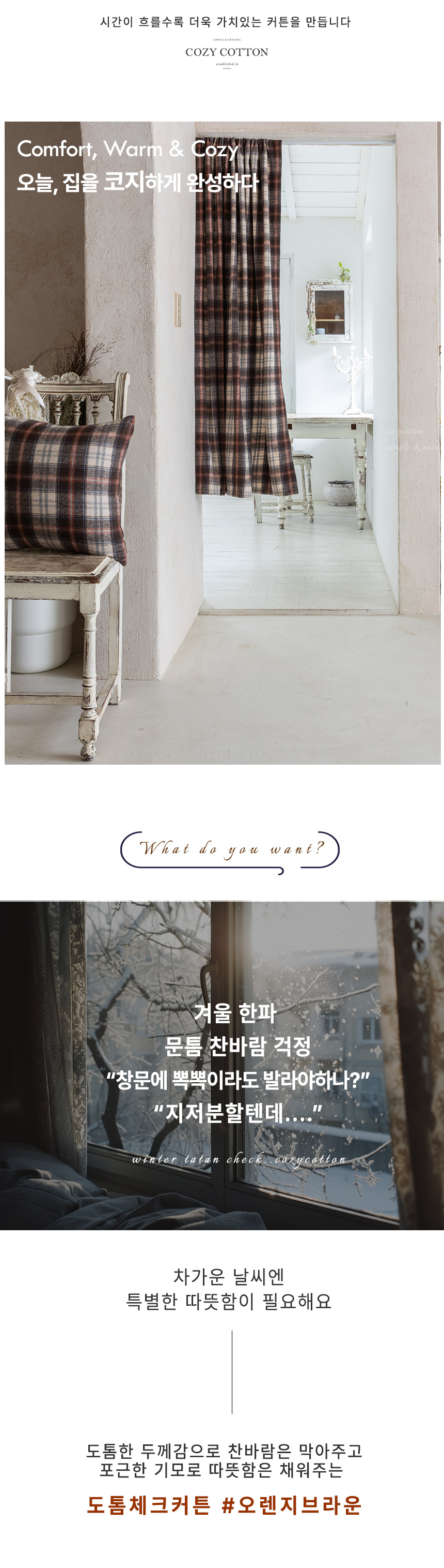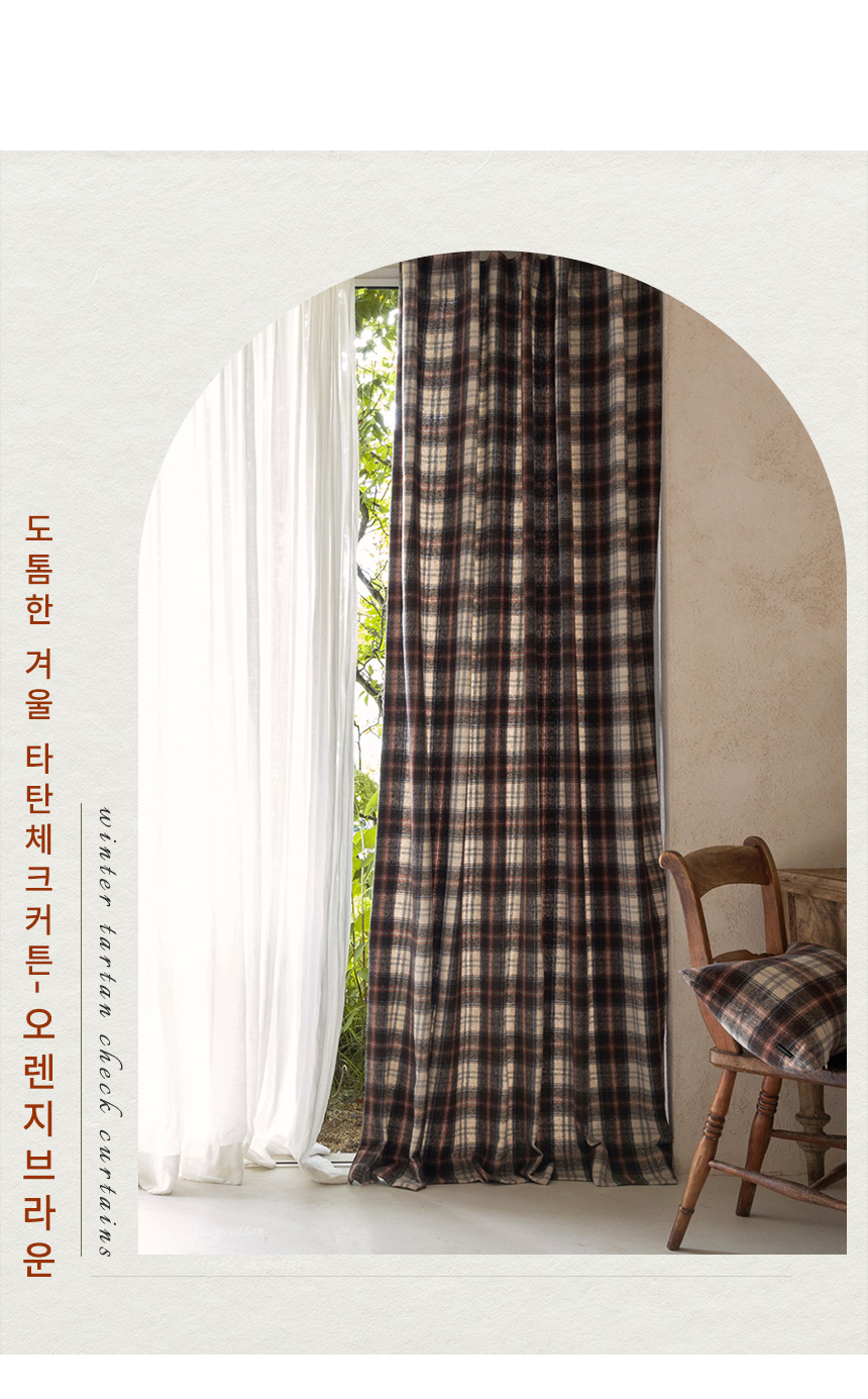 겨울 햇살보다 포근한 도톰한 타탄체크커튼_오렌지브라운입니다